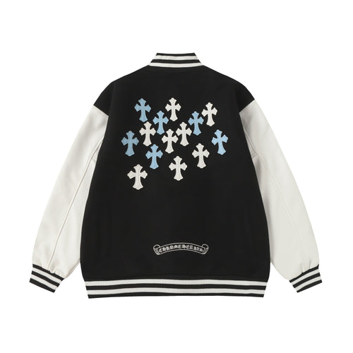 Chrome Hearts Layered Cross Varsity Jacket - Black White Street Style Outerwear 2208 -
